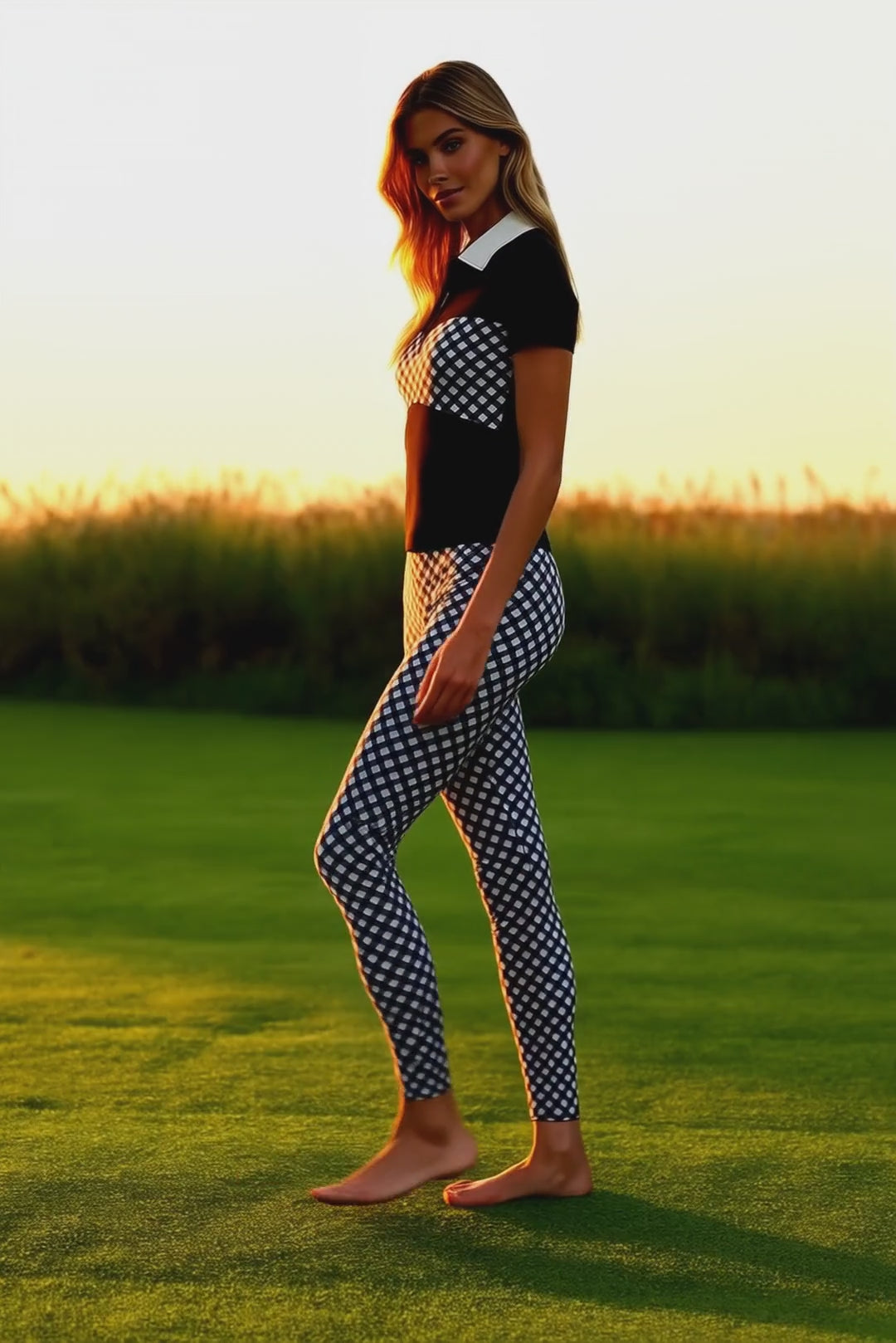 Make a fearless fashion statement on the fairway with these show-stopping gingham leggings that bring fresh energy to traditional golf attire. The all-over checkered pattern creates a dynamic visual that's impossible to ignore while providing a sleek, streamlined silhouette from tee to green
